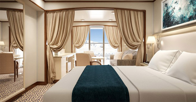 Their ships are smaller, at about 250-300 passengers, and still feature many identical signatures found on the Seabourn fleet today. Their traditional all-suite cruise ships (distinct from their sailing fleet) feature the same layout, such as separate lounge areas, walk-in robes, and marble bathrooms.